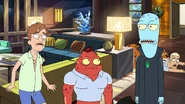 - There is an Arrested Development reference in the episode when Korvo gets annoyed at Terry for using the wrong ray (in that case, the "Rat Ray" instead of the "R.A.T Ray"), before he asks if Terry can read, claiming he can before Rob Howard (narrator of Arrested Development) says "He can’t" before a ukulele plays a sting of said show).